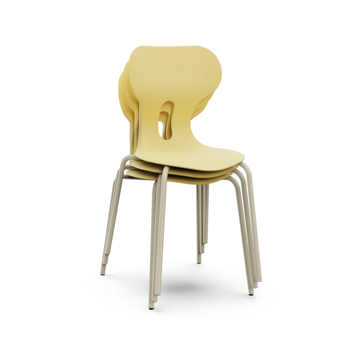 Trou à l’arrière du dossier pour accrocher le sac à dos. Empilable jusqu’à 4 unités.
