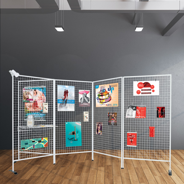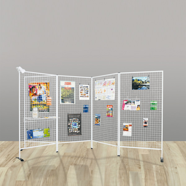 Vendue à l’unité. Modulable : Installation individuelle avec une paire de socle ou assemblage de plusieurs grilles entre elles avec jonctions bidirectionnelles (pour assembler les grilles en zig zag) ou tri directionnelles (pour assembler les grilles en étoile).
