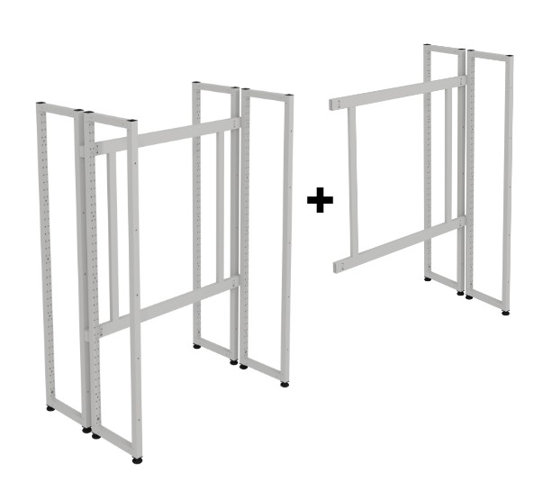 Montants en tube acier 30×30 mm ép.1,5 mm avec perforation au pas de 32 mm et embouts 30×30 mm percés pour recevoir les signalisations. Cadre d’assemblage en tube acier 50×25 mm et 35×20 mm peint poudré époxy. Contact au sol sur vérins réglables en hauteur coloris noir. Largeur : 90 cm.