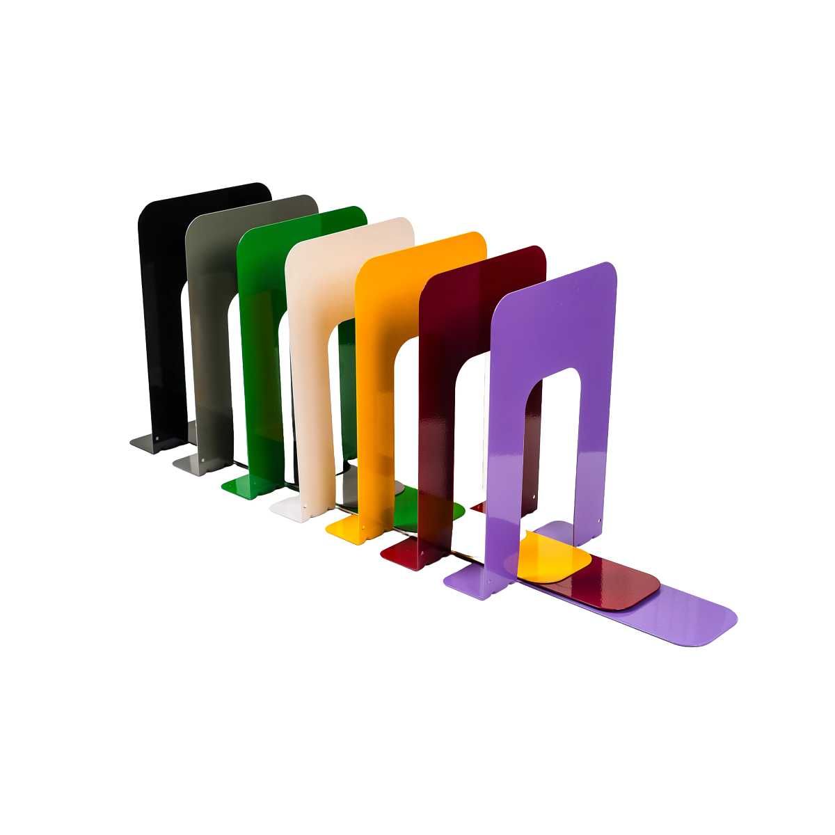 Serre-livres haute qualité, durables, qui résistent à la pression des livres les plus lourds. En feuille d’acier pressée, de fort calibre, ils résisteront à des années d’utilisation intensive.