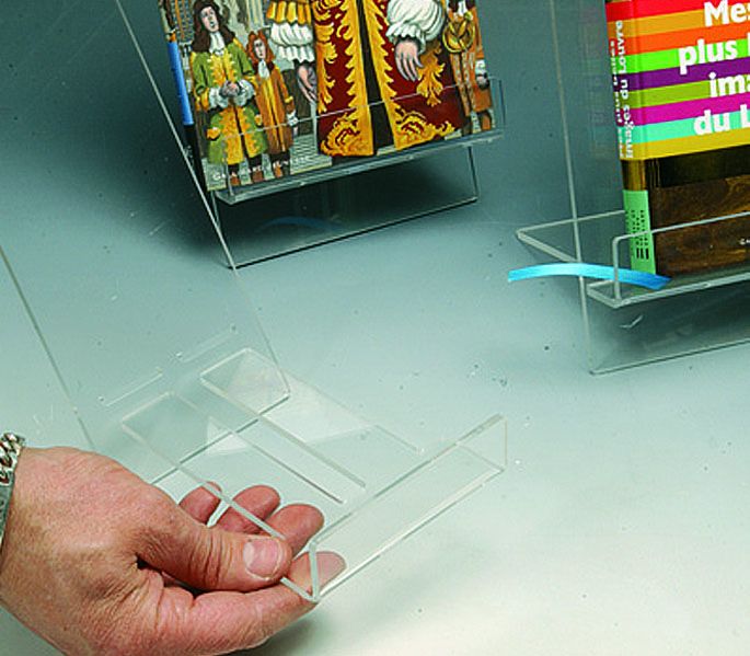 Supports Livres réglables en altuglas, montage par emboîtement.