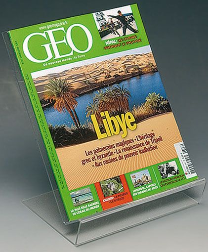 Support revues en altuglas transparent, à poser ou à pincer sur plateau d’une épaisseur maximale de 25 mm.