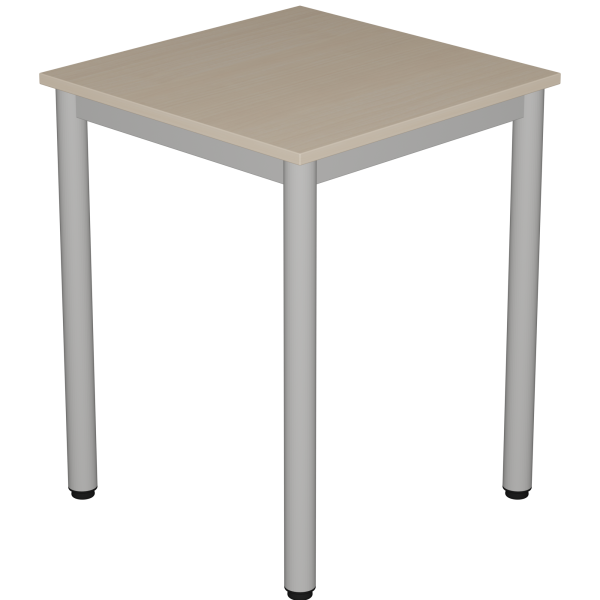Plateau mélaminé chant ABS ép. 19 mm. Piètement en tube D50 époxy. Contact au sol sur vérins réglables en hauteur coloris noir. D’autres dimensions existent.
