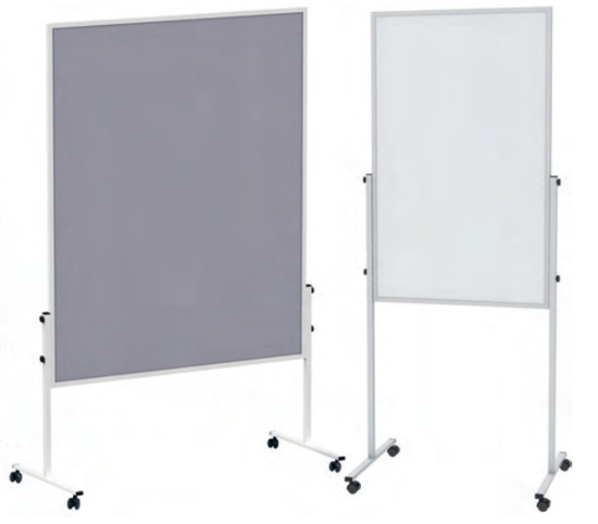 Double face : recto tableau blanc + verso feutrine. Coloris : Gris + Blanc.