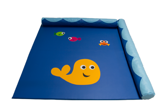 Tapis en mousse, toile enduite imperméable non feu M2. Dessous antidérapant. Cousu avec un fil de polyester de haute résistance. Lavable avec du savon et de l’eau. Respecte les normes européennes de sécurité infantile.