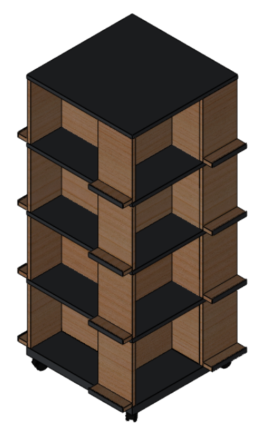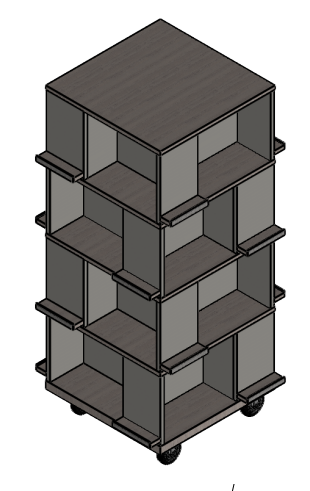 Sur roulettes. Unicolore ou bicolore. 4 niveaux avec 16 compartiments au total.
